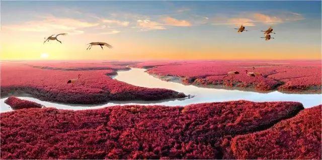 在中国盘锦,就有这样的红海滩。远远看去,就是一片极致的红,相当引人注意。