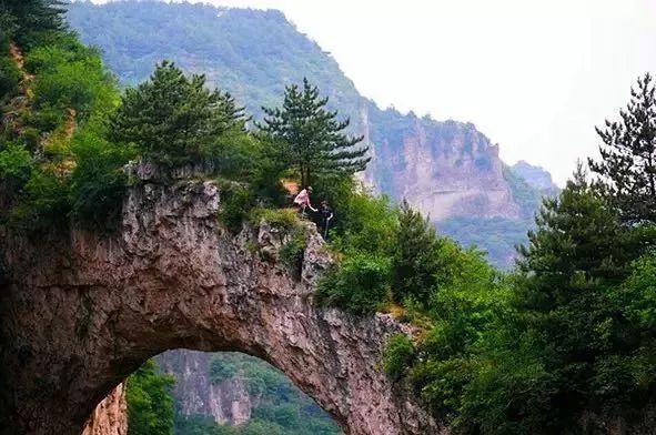 这座桥叫天生桥,是太行山大峡谷中最为奇特的景观之一,是天生的石拱桥,千百年来,很多人都从桥上走过。