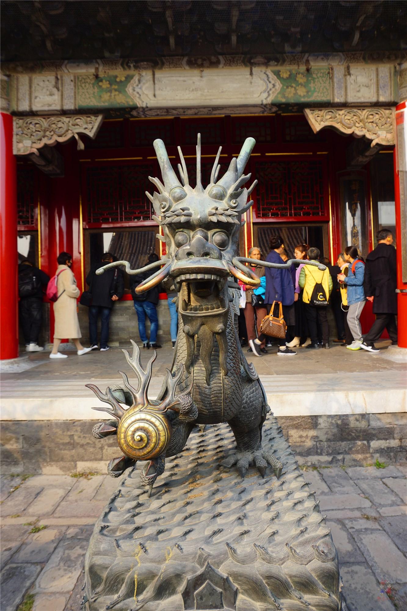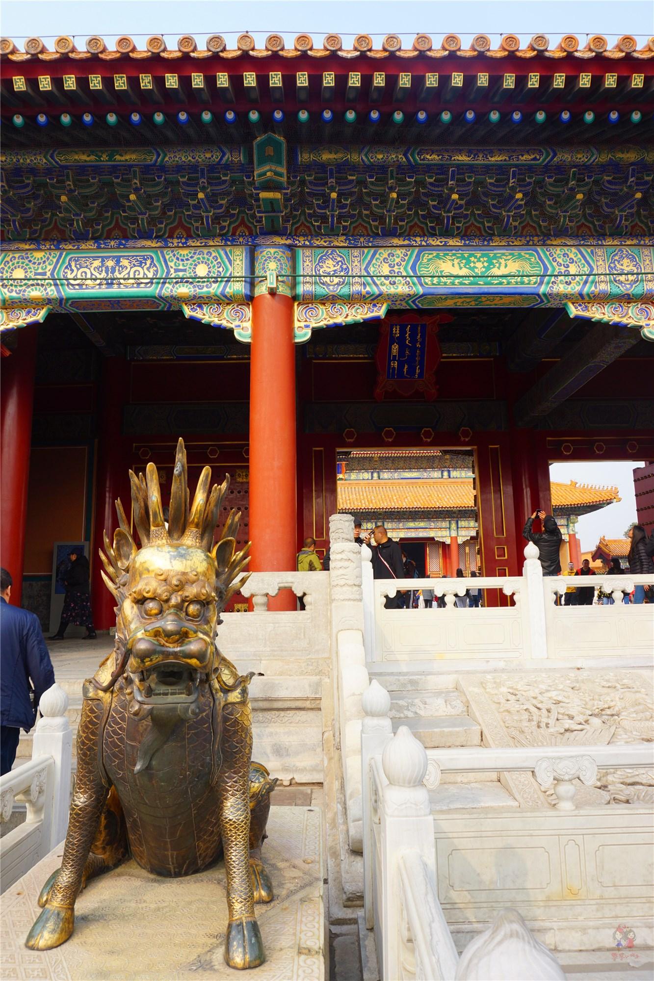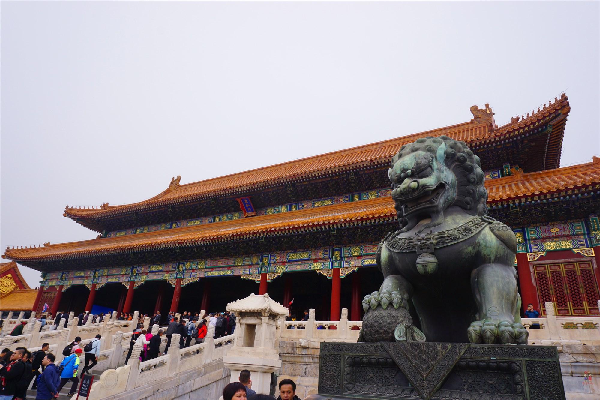 过内金水桥之后的太和门是故宫最大、规格最高的宫门,也是外朝宫殿的正门,门前一对威武肃穆的铜狮子是故宫,乃至中国最大的一对古铜狮子。太和门的东西两侧是文华殿和武英殿,明末农民起义军领袖李自成攻入北京,就是在武英殿草草举行了即位仪式。有时间的话也可以去看看。